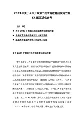 两篇文:2023年关于深入开展学习贯彻习近平新时代中国特色社会主义第二批思想主题教育实施方案与主题教育专题内容学习计划学习安排2023年关于深入开展学习贯彻习近平新时代中国特色社会主义第二批思想主题教育实施方案开展学习贯彻习近平新时代中国特色社会主义思想主题教育,是推动贯彻党的二十大战略部署的有力举措和深入推进新时代党的建设新的伟大工程的重大部署。为做好主题教育有效衔接,充分借鉴第一批主题教育中的好经验、好做法,落实落细主题教育各项部署安排,推动理论学习入脑入心、调查研究走深走实、检视整改见行见效、统筹协调有力有序,不断把学习贯彻习近平新时代中国特色社会主义思想引向深入,进一步用党的创新理论统...