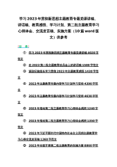 学习2023年贯彻新思想主题教育专题党课讲稿、讲话稿、教育感悟、学习计划、第二批主题教育学习心得体会、交流发言稿、实施方案(10篇word版文)供参考