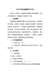2023年主题教育专题学习计划按照市委开展领袖新时代中国特色社会主义思想主题教育方案的总体安排部署,准确把握主题教育的重大意义和目标任务,聚焦党赋予x工作的职责和使命,全面落实“”好学思想、强党性、重实践、建新功的总要求,坚持学思用贯通、知信行统一,达到凝心铸魂筑牢根本、锤炼品格强化忠诚、实干担当促进发展、践行宗旨为民造福、廉洁奉公树立新风的目标,切实把理论学习、调查研究、推动发展、检视整改贯通起来,有机融合、一体推进,迅速全面兴起学习热潮,确保取得实实在在的成效,特制定如下专题学习方案。一、总体要求坚持持续学深悟透领袖新时代中国特色社会主义思想,掌握党的创新理论的深度,不断增进对党的创新理论...