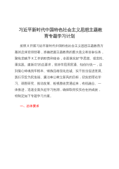 关于xx主题教育读书班学习计划安排根据《xx委员会关于印《xxx主题教育读书班工作方案》的通知》(x〔2023〕x号)的通知要求,为严格落实xxx关于读书班相关文件要求,充分发挥领导干部示范带头作用,结合xxx实际,现制定如下计划。一、时间安排x月x日(周一)至x日(周五),公司领导班子读书班为期5天。二、学习内容坚持读原著学原文悟原理,一篇一篇、逐段逐句悟,重点读学习4种必读学习材料(党的xx大报告、党章、《袖著作领选读》《袖新代中国特色社会主思领时义想专题摘编》),通读精读4种选读学习材料(《袖新代中国特色社会主思领时义想学习纲要》《》论),全面、系统、深入学习领袖新时代中国特色社会主义思...