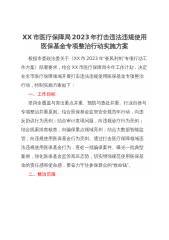 XX市医疗保障局2023年打击违法违规使用医保基金专项整治精神病定点医疗机构核查工作方案