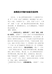 县推进乡村振兴经验交流材料+市民营经济发展情况调研报告