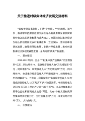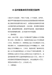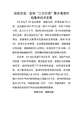 集体经济经验材料:“五位联动”增强集体经济发展实效近年来,XXX积极探索实践,全面推行资源流动、资产撬动业主带动、项目推动、党建驱动“五位联动”模式,不断增强集体经济发展动能和实效。XX年底,XX个农村集体经济组织村累计年收入XX万元,村均XX万元(最高为XX村XX万元),集体经济组织成员人均XX元;XX年随着部分项目投产,预计总收入将突破XX万元以上,村均XX万元以上,人均约XX元以上。一是资源流动,让沉睡资源变活动资金。利用土地、山林、水面等资源,将使用权流转给相关企业、专业合作社,激活“死”的资源,增加集体经济收入。如XX村对XX水库通过竞争性方式出租,租金由之前的600元/年竞价为5万...