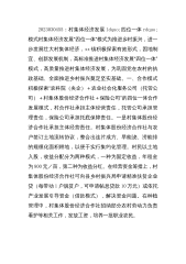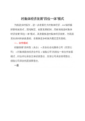 村集体经济发展“四位一体”模式为推进乡村振兴,进一步发展壮大村集体经济,xx镇积极探索有效形式,因地制宜、创新发展机制,高标准推进村集体经济发展“四位一体”模式,高质量推进村集体经济发展,为巩固党在农村的执政基础、全面推进乡村振兴奠定坚实基础。一、合作模式积极探索“农科院(央企)+农业社会化服务公司(托管公司)+村集体股份经济合作社+保险公司”的四位一体合作发展模式,村合作社承担主体经营责任,托管公司承担管理责任,保险公司承担托底保障责任。一是村集体股份经济合作社承担主体经营责任。村集体股份经济合作社与农户签订土地流转协议,整合出连片成方、旱能浇、涝能排的规模化面积耕地,以便于实行集约化管理。...