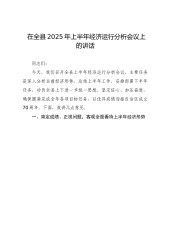 县长在全县2025年上半年经济运行分析点评会上的讲话