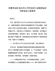 市委书记在2025年上半年全市工业经济运行分析会议上的讲话