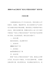 2024年xx区商务局“政务公开服务实体经济”政府开放月活动方案为持续推进政务公开工作走深走实,更好发挥以公开促落实、优服务、强监管作用,助力完善现代化产业体系有力助推实体经济做优做强,营造规则公开透明的市场化法治化、国际化营商环境,根据区政府办公室《关于组织开展我区“政务公开服务实体经济”政府开放月活动的通知》要求,结合我局实际,制定活动方案如下:一、活动主题服务实体经济,政企携手同行二、活动时间2024年6月下旬三、活动地点xx福地隆城社区广场四、活动内容聚焦“政务公开服务实体经济”发展,邀请企业和群众代表,结合自身工作重点,针对优化营商环境、政策落实推进等方面,通过现场交流、发放调查问卷...