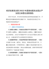 经济发展党支部2022年度推动落实全面从严治党主体责任述职报告