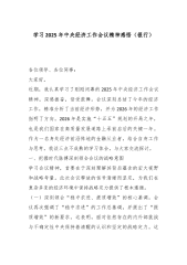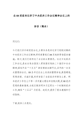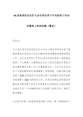 在XX党组传达学习中央经济工作会议精神会议上的讲话(精品)同志们:今天我们召开部党组会议,主要任务是传达学习刚刚闭幕的中央经济工作会议精神,研究部署我们XX系统的贯彻落实措施。刚才,我们已经传达了会议的主要情况。这次中央经济工作会议,是在全党全国深入贯彻落实党的二十届四中全会精神,谋划开启“十五五”新征程的关键节点,召开的一次至关重要的会议。XX总书记在会上发表的重要讲话,高屋建瓴、思想深邃、内涵丰富,科学回答了当前经济形势怎么看、明年经济工作怎么干等一系列重大理论和实践问题,是XX经济思想的最新篇章,为我们做好明年乃至更长一个时期的经济工作,确保“十五五”开好局、起好步,提供了根本遵循和行动...