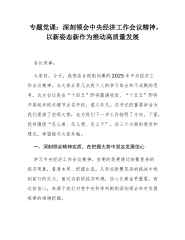 学习贯彻中央经济工作会议精神,奋力谱写中国式现代化我市实践新篇前言中央经济工作会议是在我国迈上全面建设社会主义现代化国家新征程、奋力推进高质量发展的关键节点召开的一次重要会议。习近平总书记的重要讲话高屋建瓴、思想深邃、内涵丰富,科学研判当前国内外经济形势,系统部署2026年经济工作重点任务,明确提出做好经济工作的“五个必须”规律性认识和“八个坚持”的总体要求,为我们在复杂变局中稳预期、强信心、谋发展提供了根本遵循。我市作为经济强市、区域核心引擎城市和全省经济龙头,必须自觉站在党和国家事业发展全局的高度,深刻领会中央战略意图,准确把握经济发展新阶段的新特征新要求,切实把思想和行动统一到党中央对经...