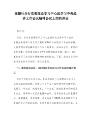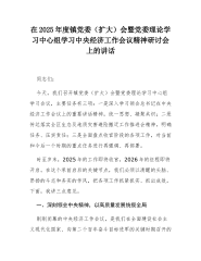 在2025年度镇党委(扩大)会暨党委理论学习中心组学习中央经济工作会议精神研讨会上的讲话同志们:今天,我们召开镇党委(扩大)会暨党委理论学习中心组学习会议,主要任务有三项:一是深入学习领会总书记在中央经济工作会议上的重要讲话精神,统一思想、凝聚共识;二是传达落实全区生态及地质灾害避险搬迁工作推进会精神,明确任务、压实责任;三是全面盘点收官阶段的各项工作,对当前和今后一个时期的重点任务进行再强调、再部署。时至岁末,2025年的工作即将收官,2026年的征程即将开启。在这个承前启后的关键节点,我们必须以清醒的头脑、昂扬的斗志和务实的作风,把各项工作抓紧抓实、抓出成效。下面,我讲三点意见。一、深刻领...