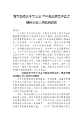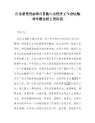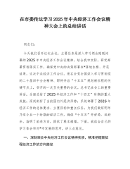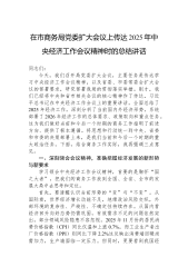 在市商务局党委扩大会议上传达2025年中央经济工作会议精神时的总结讲话同志们:今天,我们召开局党委扩大会议,主要任务是传达学习中央经济工作会议精神,以及省委、市委常委会扩大会议的部署要求,研究部署我局的贯彻落实举措。刚才,我们已经将中央和省市相关会议的核心精神作了传达。习近平总书记在中央经济工作会议上的重要讲话,全面总结了2025年经济工作,深刻分析了当前国内外经济形势,系统部署了2026年经济工作的总体要求、政策取向和重点任务。这为我们做好当前和今后一个时期的商务工作指明了前进方向、提供了根本遵循。将思想和行动统一到中央、省委和市委的决策部署上来,是我们当前和今后一个时期的重大政治任务。下面...