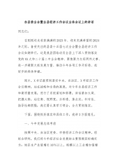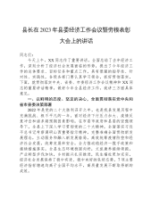 关于区委XX届XX次全体(扩大)会议暨区委经济工作会议上的讲话同志们:这次会议的主要任务是,深入学习贯彻党的XX大精神,中央、省委、市委经济工作会议精神和省、市“两会”精神回顾总结2022年工作,安排部署2023年工作,动员全区上下加压奋进、勇毅前行,为建设青春XX、创业新城而团结奋斗。刚才,XX同志部署了今年经济工作。下面,我讲四点意见。一、2022年各项工作成效明显,奠定了“加压奋进、勇毅前行”的坚实基础2022年是新一届区委第一个完整履职之年。在中央、省委、市委的坚强领导下,区委常委会团结带领全区上下实干担当、奋发有为,推动各项事业取得了新进展新成效。全年实现GDP增长6%,规模工业增加...