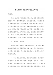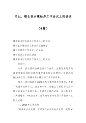 镇长在2024年经济工作会议上的讲话同志们:今天,我们召开X镇经济工作会议,主要任务是回顾2023年工作,表彰激励先进,分析当前形势,认真贯彻落实中央和省市经济工作会议精神,安排2024年工作任务。这次会议既是一次总结成绩、表彰先进的群英会,也是一次统一思想、再鼓干劲的动员会,更是一次部署任务、昂首进军的誓师会。为开好这次会议,镇党委进行了认真研究,稍后,书记还要做重要讲话,请大家认真学习领会,抓好贯彻落实。下面,就本次会议精神,我讲两个方面。一、2023年工作回顾2023年是落实党的XX大精神首战之年,镇政府在镇党委的坚强领导下,紧紧团结和依靠全镇人民,扎实推进产业发展、乡村建设、民生改善等...