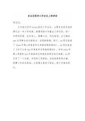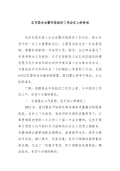 在县委X全会暨县委经济工作会议上的讲话刚才,市委常委、县委X书记全面总结了2023年工作,深入分析了当前形势,明确了今年工作目标和任务要求,大家要深入学习领会,认真抓好落实。下面,我就经济工作讲几点意见:2023年以来,面对前所未有的经济运行深度承压、矛盾风险交织叠加的复杂严峻形势,我们在县委的坚强领导下,聚焦高质量发展首要任务和经济稳增长最紧迫任务,以“三个年”活动为抓手,坚定不移补短板、调结构、促转型,全力以赴稳增长、惠民生、防风险、保稳定,各项工作在极为困难的情况下艰难前行。一是经济运行调稳并进。始终把稳增长摆在突出位置,建立稳增长联席会议和周研判、月调度等制度,专题研究项目建设、工业经...