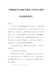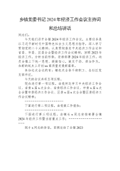 乡镇党委书记2024年经济工作会议主持词和总结讲话范文