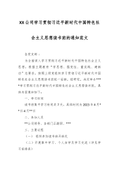 XX公司学习贯彻习近平新时代中国特色社会主义思想读书班的通知范文