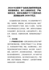 2024年支部班子“执行上级组织决定、执行上级组织决定、严格组织生活、加强党员教育管理监督、联系服务群众、抓好自身建设”等方面存在的原因整改材料1980字范文