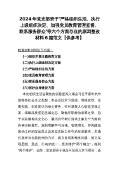 2024年党支部班子“严格组织生活、执行上级组织决定、加强党员教育管理监督、联系服务群众”等六个方面存在的原因整改材料6篇范文【供参考】