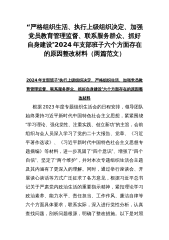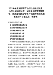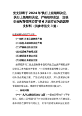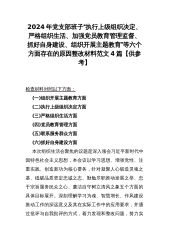 范文4篇:2024年党支部班子“执行上级组织决定、严格组织生活、加强党员教育管理监督、抓好自身建设、组织开展主题教育”等六个方面存在的原因整改材料【供参考】