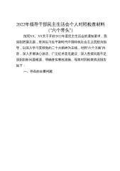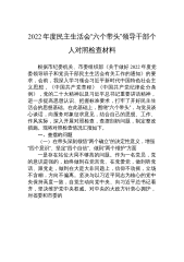 区委常委、政法委书记2022年度民主生活会“六个带头”对照检查材料根据2022年度民生生活会的具体部署和安排,我始终坚持以理论学习为导向,以整改落实为根本,深入学习习近平新时代中国特色社会主义思想、习近平总书记系列重要讲话精神及《习近平谈治国理政》第四卷,进一步坚定了政治立场,锤炼了党性修养。在此基础上,聚焦“六个方面”的要求,从思想、生活和工作几个层面,认真查找自身存在的问题,剖析产生的根源,明确了今后的整改措施和努力方向,现将个人对照检查情况报告如下: 一、存在的主要问题 (一)在带头深刻感悟“两个确立”的决定性意义,增强“四个意识”、坚定“四个自信”、做到“两个维护”方面。一是理...