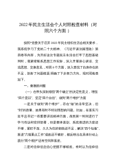 2022年民主组织生活会个人对照检查材料(对照六个方面)