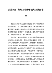 锚定“四个坚持”合力推动清廉建设强势起航——在全市清廉建设推进会上的交流发言全面建设清廉**是捍卫“两个确立”、践行“两个维护”的政治要求,是新时代推进全面从严治党向纵深发展的具体实践,更是加快打造县域高质量发展的北方样板、**龙头的坚强保障。争做*****城市工作启动以来,全市上下坚决扛起责任担当,锚定“四个坚持”,精心部署安排、细化务实举措、强力组织实施,清廉**建设实现良好开局起步,一场声势浩荡的清廉**建设浪潮汹涌而来。一、坚持高标统筹,推动清廉建设一贯到底紧紧把牢全面从严治党的主动权,将清廉建设作为全面从严治党、一体推进三不腐机制的重要载体抓紧抓实。市委主导、定标‚‛挂图。召开全市争...