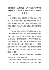 【党课讲稿】宣讲提纲:深刻领悟“两个确立”的决定性意义推动党的二十大精神学习宣传贯彻走深走实