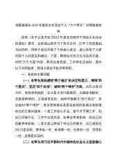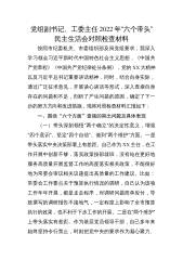 2022年度专题民主生活会(六个带头)对照检查材料(5篇)(全文26395字)六个带头:(一)在带头深刻感悟“两个确立”的决定性意义,增强“四个意识”、坚定“四个自信”、做到“两个维护”方面(二)在带头用习近平新时代中国特色社会主义思想凝心聚魂方面(三)在带头坚持和加强党的全面领导方面(四)在带头坚持以人民为中心的发展思想,推动改革发展稳定方面(五)在是带头发扬斗争精神,防范化解风险挑战方面(六)在带头落实全面从严治党政治责任方面2022年领导干部“六个带头”民主生活会对照检查材料按照省委统一部署和省纪委、省委组织部《通知》要求,会前,我紧扣本次民主生活会主题,进一步深化了理论学习,与班子成员...