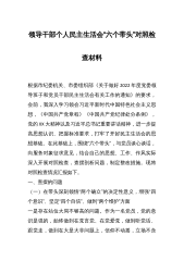 某市财政局党员领导干部2022年民主生活会(六个带头)对照检查材料根据市纪委、市委组织部《关于开好2022年度县以上党和国家机关党员领导干部民主生活会的通知》精神,本人认真学习指定内容,开展谈心谈话,沟通思想,交换意见,多方征求意见建议。着重围绕对照六个方面(带头深刻领悟“两个确立”的决定性意义,增强“四个意识”、坚定“四个自信”、做到“两个维护”;带头用习近平新时代中国特色社会主义思想凝心铸魂;带头坚持和加强党的全面领导;带头坚持以人民为中心的发展思想,推动改革发展稳定;带头发扬斗争精神,防范化解风险挑战;带头落实全面从严党政治责任)查找了个人存在的问题和不足,深刻剖析思想根源,明确整改措施...