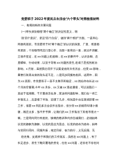 党委班子2022年度民主生活会“六个带头”对照检查材料一、检视剖析的主要问题(一)带头深刻领悟“两个确立”的决定性意义,增强“四个意识”、坚定“四个自信”、做到“两个维护”方面。一是同心同德有差距。市党委班子对“两个确立”的认识的深度、广度、维度都有差距,个别领导同志口是心非、当面一套背后一套,政治不清醒、立场不坚定,在xx问题上犯迷糊,在xx的事件中,认识含糊、态度暧昧、行动动摇,以至于导致xx问题的发生,造成了恶劣的政治影响。x月前,虽然我们召开了以案促改民主生活会,但受xx影响,重整行装再出发的劲头还不足。二是同步同频有差距。这两年,因为xx原因,市党委班子一直不太整齐和稳定,xx岗位存...