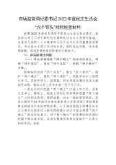 2022年民主组织生活会个人对照检查材料(对照六个方面)按照*党委关于召开2022年民主组织生活会相关要求,我系统学习了党的二十大精神、《习近平谈治国理政》第四卷等内容,为开好这次专题民主生活会打牢了思想基础。同时,我紧密联系思想工作实际,深入开展谈心谈话、交流思想、交换意见,对照6个方面,深入查找了自身存在的不足,剖析了问题根源,明确了下步努力方向。现对照检查如下。一、查摆的问题(一)在带头深刻领悟“两个确立”的决定性意义,增强“四个意识”、坚定“四个自信”、做到“两个维护”方面一是关于做到“两个维护”,存在“做”的非常坚决,但“到”的质量、效果有时不特别理想的问题。比如,在落实习近平总书记...