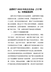 2022年民主组织生活会个人对照检查材料(对照六个方面 )