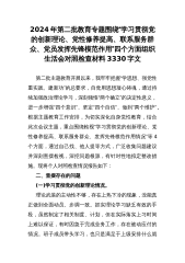 2024年重点围绕“联系服务群众情况,发挥先锋模范作用、学习贯彻党的创新理论、党性修养提高、党支部战斗堡垒作用情况”等四个检视方面突出问题对照检视检查材料2篇文2024年第二批教育对照“学习贯彻党的创新理论,党性修养提高,联系服务群众情况,发挥先锋模范作用”四个方面专题组织生活会检查材料发言提纲第二批主题教育开展以来,我牢牢把握“学思想、强党性重实践、建新功”的总要求,自觉用思想凝心铸魂,通过持续加强政治理论学习,深刻领悟“两个确立”的决定性意义,进一步增强“四个意识”、坚定“四个自信”、做到“两个维护”。根据主题教育工作安排,为切实深化自身党性教育,结合此次会议主题,重点围绕检视“学习贯彻党...