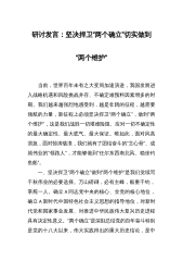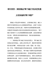 研讨发言:深刻领会“两个确立”的决定性意义 切实做到“两个维护”