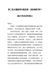 第二批主题教育专题党课:将拥护“两个确立”的自觉转化为做到“两个维护”的自觉同志们:大家好!今天我要讲的主题是“将拥护‘两个确立’的自觉转化为做到‘两个维护’的自觉”。在开始今天的课程之前,我想先和大家分享一个小故事。在红军长征过程中,有一位普通的红军战士,他叫张思德。他在一次战斗中腿部中弹,但他依然坚持跟随部队前进。在长征途中,他主动承担起照顾伤员的任务,为他们抬担架、送食物。当他自己的伤口感染时,他却选择了隐瞒,继续为战友们服务。最终,他因为伤势过重而牺牲。这个故事虽然简单,但它却蕴含着一个深刻的道理:一个真正的共产党员,应该始终把党和人民的利益放在第一位,无论在什么情况下,都要坚定地拥护...
