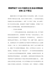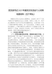 市审计局党组领导班子2025年度专题民主生活会对照检查材料(五个带头)根据市委关于开好2025年度专题民主生活会有关工作部署,市审计局党组高度重视召开2025年度专题民主生活会有关工作,周密制定方案,扎实做好学习研讨、征求意见、谈心谈话等各环节工作,在此基础上,局党组班子坚持把自己摆进去、把职责摆进去、把工作摆进去,深入查摆剖析,共梳理出5个方面16项具体问题。现将对照检查情况报告如下。一、存在的主要问题(一)在带头强化政治忠诚、提高政治能力方面。局党组班子能够深刻领悟“两个确立”的决定性意义,自觉增强“四个意识”、坚定“四个自信”、做到“两个维护”,始终在思想上政治上行动上同党中央保持高度一...