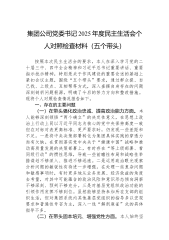XX县卫生健康局副局长2025年度民主生活会个人对照检查材料(五个带头)