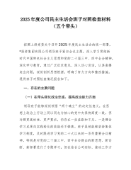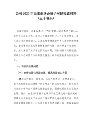 XX公司党委书记2025年度民主生活会个人对照检查材料(五个带头)2