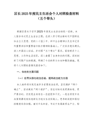 XX区人民政府副区长2025年度民主生活会个人对照检查材料(五个带头)3