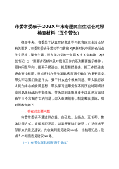 市委常委、纪委书记党史学习教育民主生活会“五个带头”对照检查发言提纲