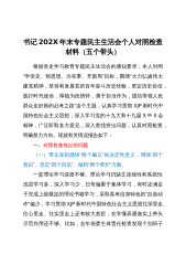 市委常委、纪委书记党史学习教育民主生活会“五个带头”对照检查发言提纲根据省委、市委关于开好党史学习教育专题民主生活会的有关要求,本人对照此次民主生活会主题,在开展学习教育、广泛征求意见建议、深入开展谈心谈话的基础上,认真对照“五个方面”内容,深刻查摆检视,深挖问题根源,明确整改措施。现将本人对照检查情况汇报如下:一、对照检查查摆出来的问题(一)在带头深刻感悟“两个确立”的决定性意义,深刻感悟党坚持把马克思主义同中国具体实际相结合、同中华优秀传统文化相结合的非凡历程,全面贯彻XJP新时代中国特色社会主义思想,树立正确党史观,坚定信仰信念信心,增强“四个意识”、坚定“四个自信”、做到“两个维护”方...