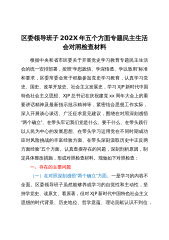 人大机关领导干部202X年党史学习教育专题民主生活会“五个带头”对照检查材料