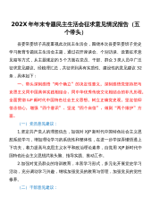 Print本文仅供学习参考,请勿照搬照抄!202X年乡镇领导干部五个带头专题民主生活会发言材料汇编(含上年度整改情况,7篇,4.5万字)目录乡镇党委书记乡镇副书记副镇长1副镇长2副镇长3乡镇武装部长乡镇党建办主任要求与提纲一、202x年度以来民主生活会整改措施落实情况(一)202x年度民主生活会整改措施落实情况(二)意识形态专项巡察整改专题民主生活会整改措施落实情况二、本次民主生活会查摆的主要问题(一)对照带头深刻感悟“两个确立”的决定性意义,深刻感悟党坚持把马克思主义同中国具体实际相结合、同中华传统文化相结合的非凡历程,全面贯彻XJP新时代中国特色社会主义思想,树立正确党史观,...