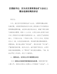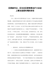 区委副书记、区长在区委常委会扩大会议上整治违规吃喝的讲话