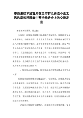 市质量技术监督局在全市群众身边不正之风和腐败问题集中整治推进会上的交流发言