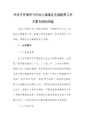 国有资源管理监督委员会2025年开展学习八项规定主题教育工作方案与在深入贯彻八项规定精神学习教育动员部署会议上的讲话提纲【2篇】国有资源管理监督委员会2025年全面开展学习中央八项规定主题教育工作方案一、指导思想以习近平新时代中国特色社会主义思想为核心指引,全面、深入地贯彻落实党的二十大精神,深刻领悟“两个确立”的决定性意义,牢固树立“四个意识”、坚定“四个自信”、坚决做到“两个维护”。紧紧围绕学习中央八项规定及其实施细则精神这一关键契机,聚焦市国资委系统的作风建设,持之以恒推进正风肃纪工作,以零容忍的态度坚决破除形式主义、官僚主义等作风顽疾。不断巩固和拓展落实中央八项规定精神的成果,将其转化...