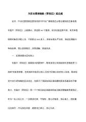 纪检干部观看专题片《零容忍》心得体会2022近日,五集电视专题片《零容忍》热播,片中揭露了落马“老虎”让人气愤亦令人深省的斑斑劣迹,讴歌了那些在工作中用行动诠释着纪检队伍标准,维护着纪检队伍初心、令人敬佩的先进典型,更是彰显了强劲有力的监察力量。监察力量,让“伪装者”无处遁形。“勤廉者平安一世,贪婪者自毁一生。”全国纪检监察机关用铁一般的纪律让不担当、不作为,以权谋私的干部原形毕露、无处藏身,维护着党的团结统一。正是这种国家监察体制改革,进一步提升了权威,整合了资源,健全了体制,从制度上消除权力寻租空间,也让即使是身在要职的中管干部也无处遁形。正是这种力量,为党风廉政建设和反腐败工作提供了有利...