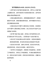 “把”字型排比句40例(2023年2月8日)1.把牢顶天立地与铺天盖地的关系,把牢点上击破与面上集聚的关系,把牢外部招引与内部挖潜的关系,把牢舍得砸钱与髙效用钱的关系。2.把政治建设摆在首位,把思想建设紧抓在手,把制度建设作为支撑,把组织建设落到实处,把作风建设引向深入,把纪律建设挺在前面。3.把政治安全作为要中之要的首位工程来抓,把发展安全作为重中之重的基础工程来抓,把公共安全作为急中之急的底板工程来抓。4.把“两个确立”融入血脉,把“国之大者”始终装在心里,把“首要任务”牢牢扛在肩上,把“团结奋斗”自觉付诸行动。5.把分管工作放在事业全局中来思考,把具体问题提到原则高度来把握,把当前任务放...