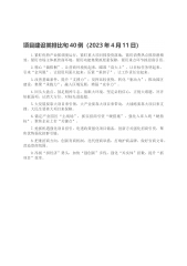 “线”字型有关排比句大全(40条)本期主题:“线”字型1.视党的政策为“生命线”以自持,视党纪国法为“高压线”以自醒,视作风规定为“警戒线”以自律。2.干部在一线工作、领导在一线指挥、问题在一线解决、能力在一线提升、绩效在一线考核、奖惩在一线兑现。3.必须把握“大德”这条高线,必须站稳“公德”这条基线,必须管好“私德”这条底线。4.殚精竭虑,追求达到的目标是为“高线”;居安思危,防患未然的保障是为“底线”。5.不忘政治纪律这条“生命线”,不触法律这条“高压线”,不碰党纪这条“警戒线”。6.把党的政策当作生命线,把国家法律当作高压线,把组织纪律当作警戒线。7.在工作中坚持公道底线,在廉政上坚守纪...